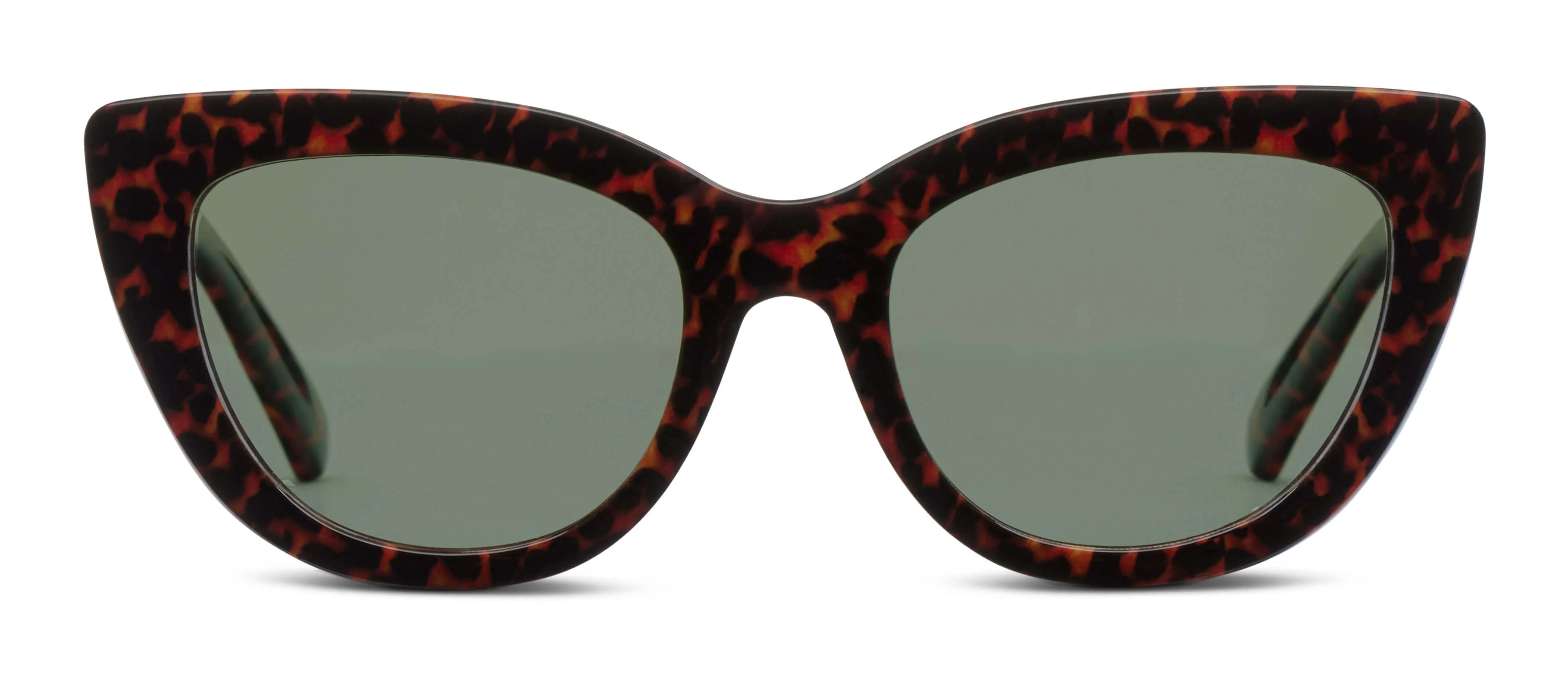 Leopard Tortoise: No Correction Polarized lenses and Corrective (Reading, Bifocal) lenses feature a solid green lens.