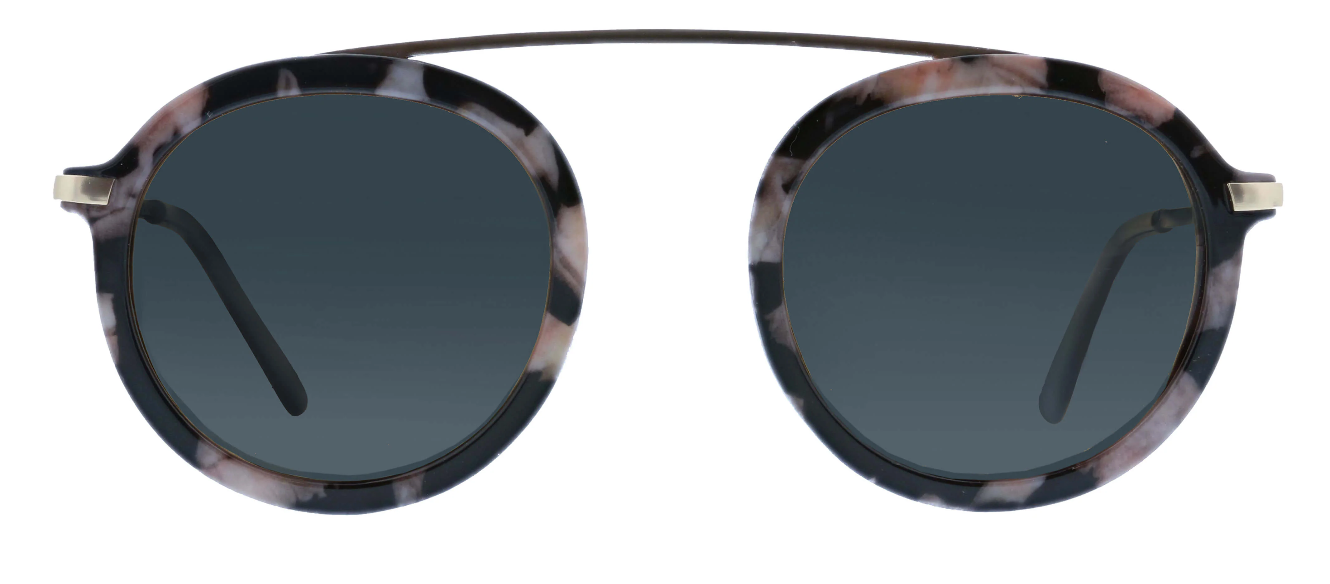 Polished vibes for spontaneous getaways. On Holiday is a frame you'll come back to again and again for its modern style. With a single brow bar in accented gold, these sunglasses are uniquely designed without a standard nose bridge—a trend-setting statement that is sure to get compliments while you're out and about. The metal temples, round shape, and neutral-colored front make these frames your essential accessory for seasons to come.